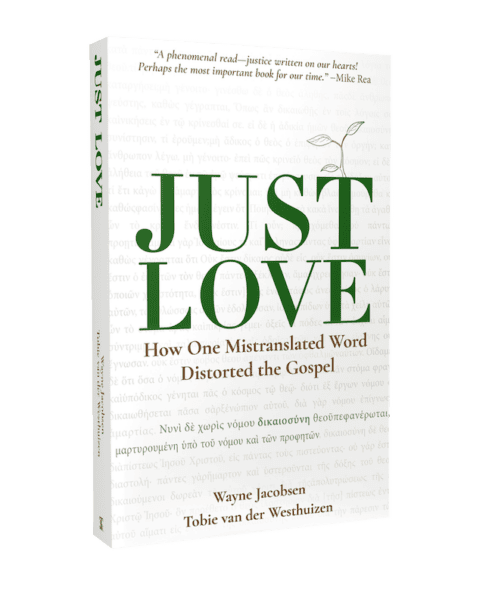 That’s why I’m so excited that this new book is finally finished. Just Love wasn’t even in my heart fifteen months ago. But through an intriguing email, I began a relationship with Tobie van der Westhuizen from South Africa, and out of that growing friendship, the idea for this book was born. His research into a mistaken translation in the Greek captured my heart because this was what love had been teaching me throughout the three previous decades. Now, I have biblical language to make sense of it and a better understanding of what Jesus accomplished to share his love with the world through people made just by their growing trust in him.